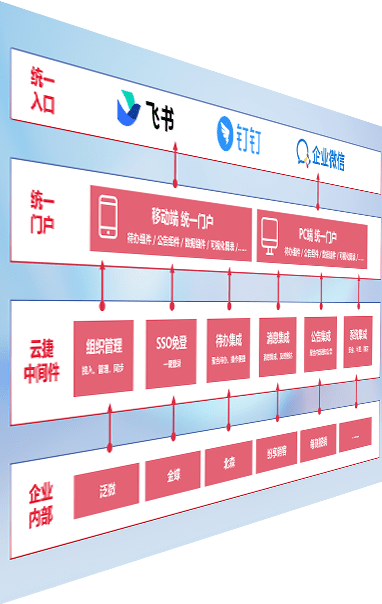 对协作平台提供支持服务,,支持企业应用与协作平台对接,,,,包含组织同步、、、、消息集成、、、、待办集成等。。支持目前主流的协作平台:钉钉、、、企微和飞书。。